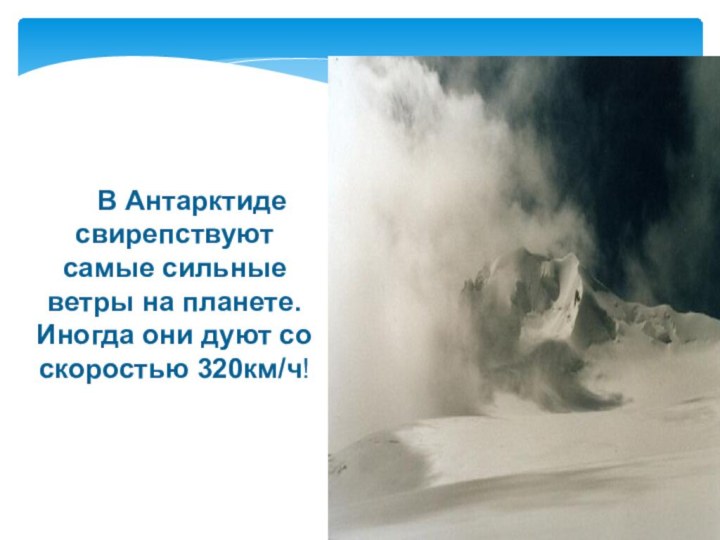 В Антарктиде свирепствуют самые сильные ветры на планете.