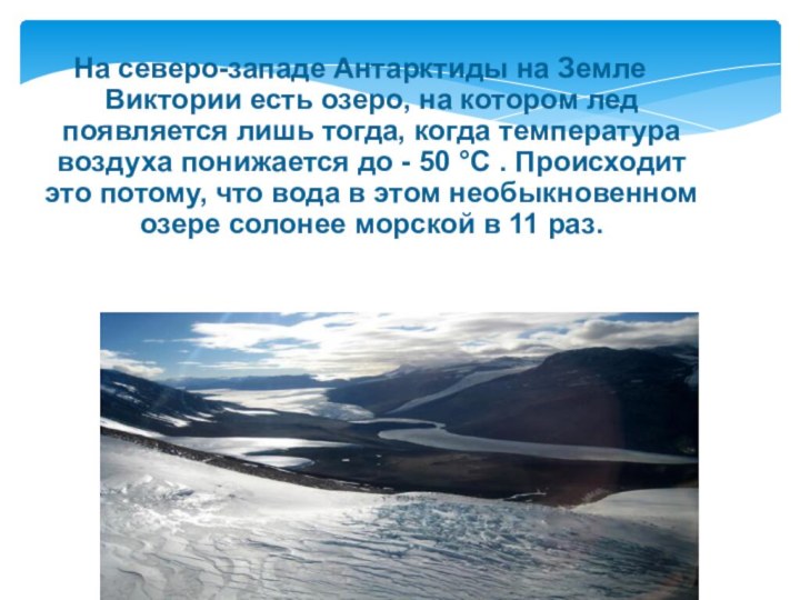 На северо-западе Антарктиды на Земле Виктории есть озеро,
