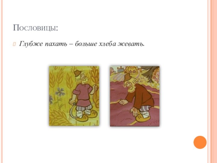 Пословицы:Глубже пахать – больше хлеба жевать.
