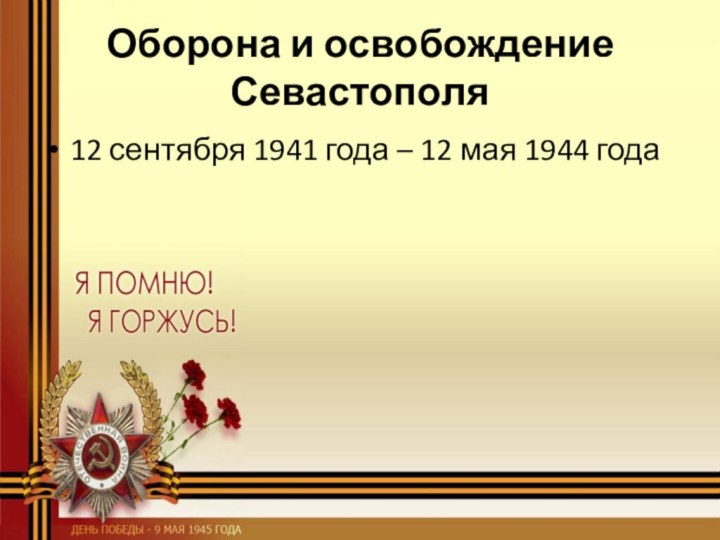 Оборона и освобождение Севастополя12 сентября 1941 года – 12 мая 1944 года