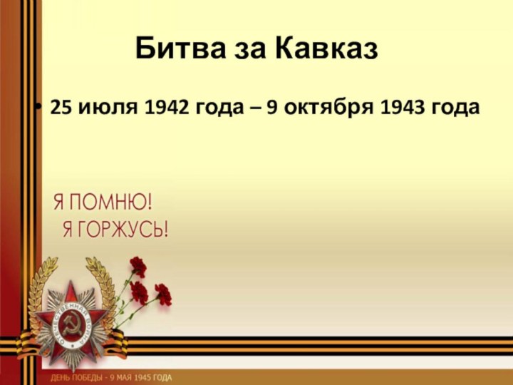 Битва за Кавказ25 июля 1942 года – 9 октября 1943 года
