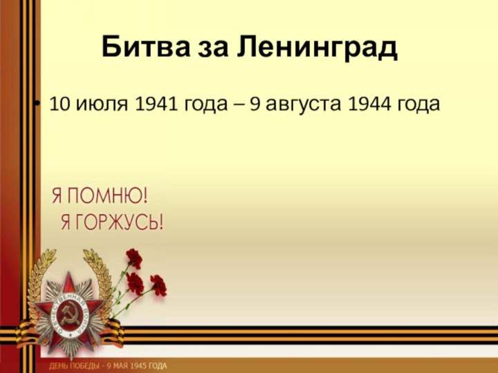 Битва за Ленинград10 июля 1941 года – 9 августа 1944 года