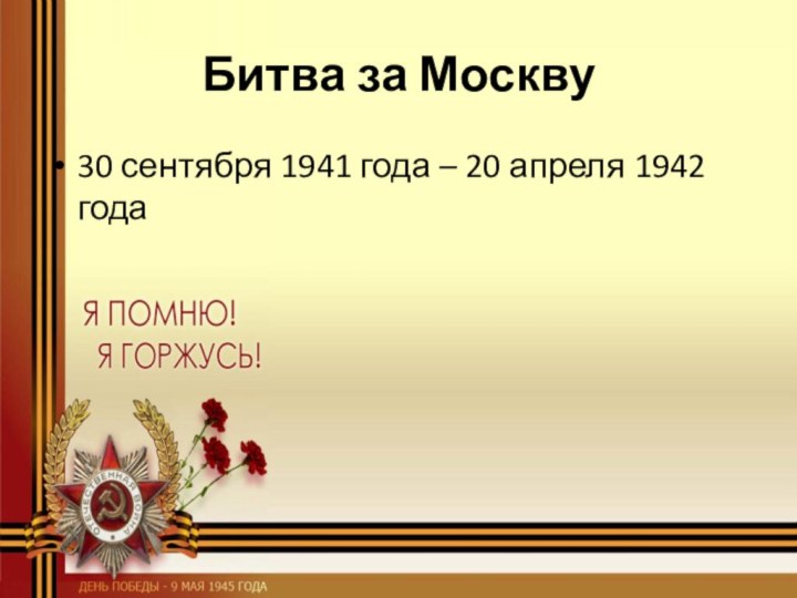 Битва за Москву30 сентября 1941 года – 20 апреля 1942 года