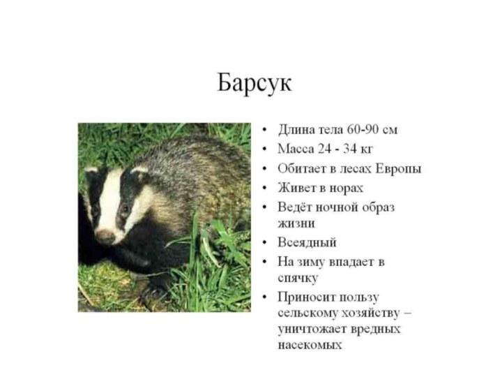Презентация на тему к открытому уроку по чтению в 4 классе А. Барков Барсучья кладовая