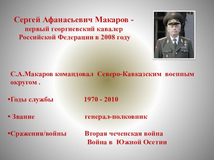 С.А.Макаров командовал Северо-Кавказским военным округом .