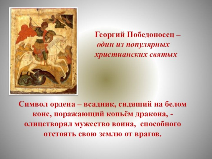 поражающий копьём дракона, - олицетворял мужество воина, способного отстоять