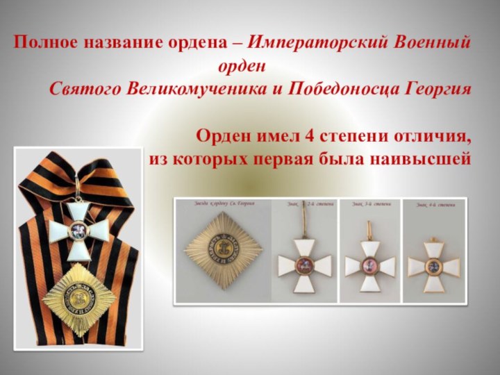 Слайд 6 Полное название ордена – Императорский Военный орден