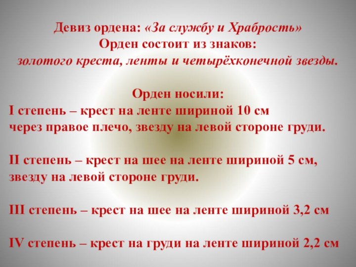 Слайд 7 Девиз ордена: «За службу и Храбрость»