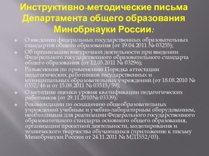 Инструктивно-методические письма Департамента общего образования Минобрнауки России: