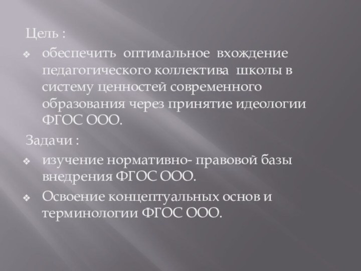 систему ценностей современного образования через принятие идеологии ФГОС ООО.
