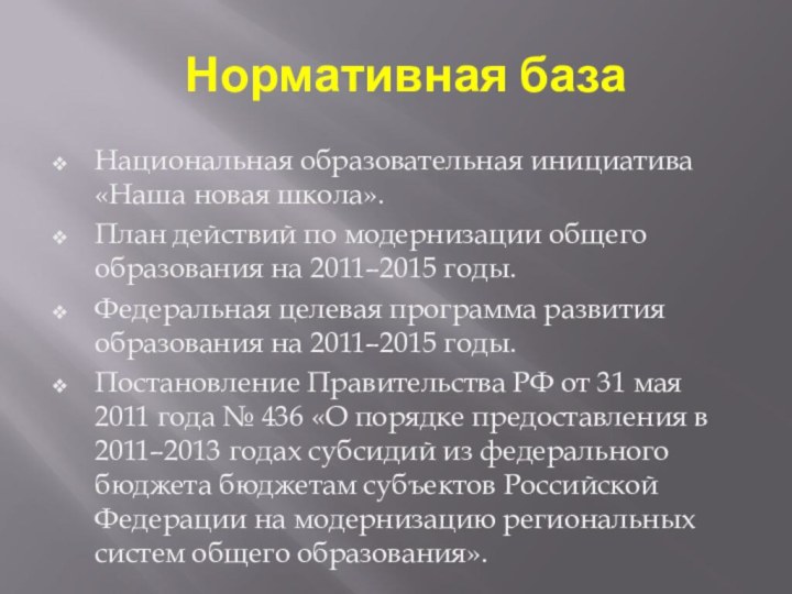 Постановление Правительства РФ от 31 мая 2011 года № 436 «О порядке предоставления в 2011–2013 годах субсидий из федерального бюджета бюджетам субъектов Российской Федерации на модернизацию региональных систем общего образования».