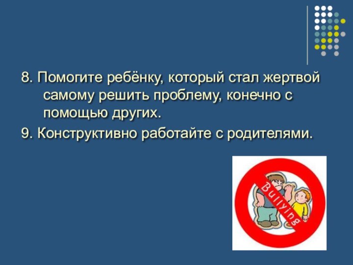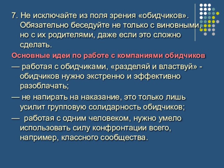 — не напирать на наказание, это только лишь усилит групповую солидарность обидчиков;