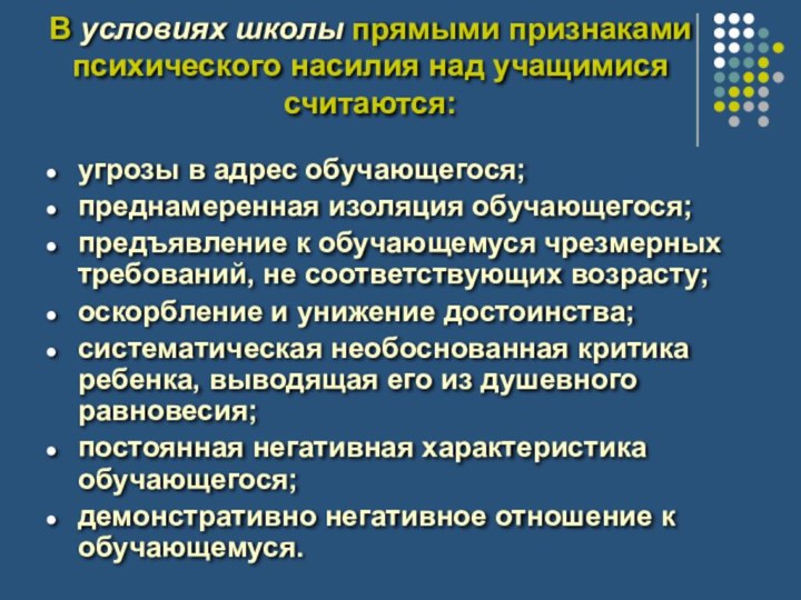 к обучающемуся чрезмерных требований, не соответствующих возрасту;