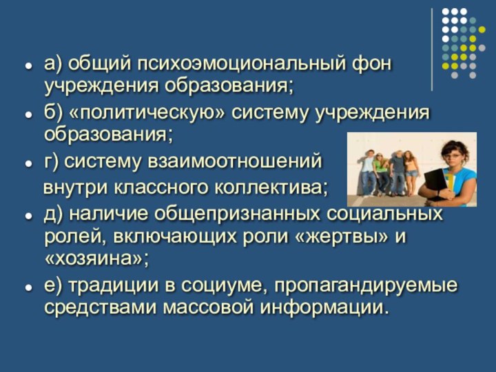 Непринятие свободы самовыражения учеников через внешний вид, принадлежность к субкультурной группе.