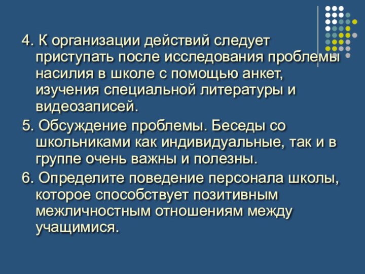 5. Обсуждение проблемы. Беседы со школьниками как индивидуальные, так и в группе очень важны и полезны.