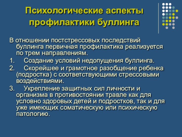 3. Укрепление защитных сил личности и организма в противостоянии травле как для условно здоровых детей и подростков, так и для уже имеющих соматическую или психическую патологию.