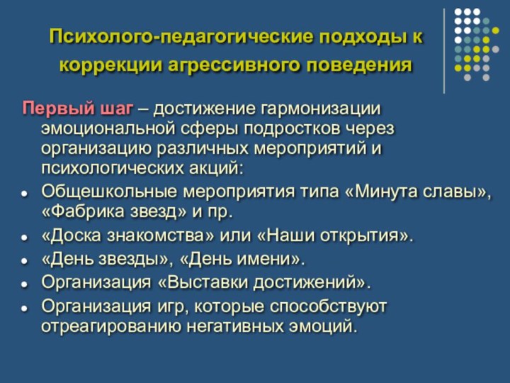 Психолого-педагогические подходы к коррекции агрессивного поведения