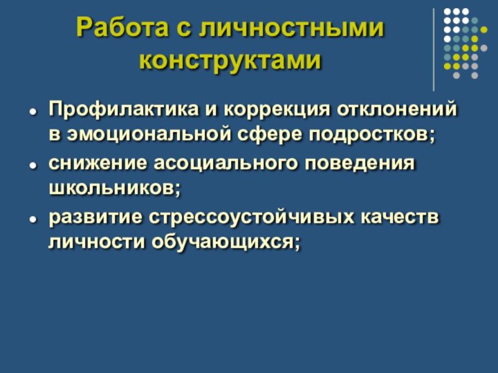 – достижение гармонизации эмоциональной сферы подростков через организацию различных