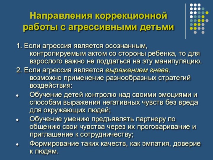 2. Если агрессия является выражением гнева, возможно применение разнообразных стратегий воздействия: