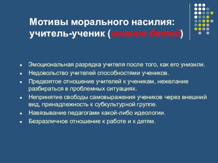 учителей к ученикам, нежелание разбираться в проблемных ситуациях.