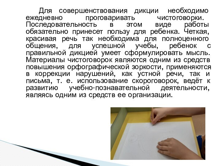 Для совершенствования дикции необходимо ежедневно проговаривать чистоговорки. Последовательность