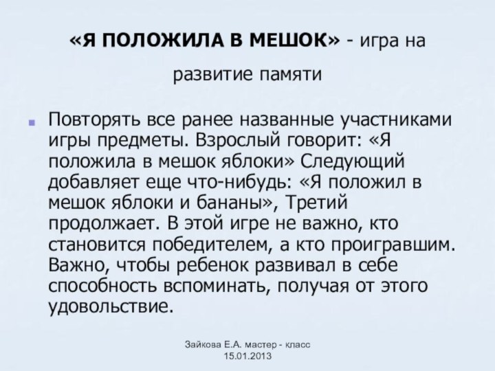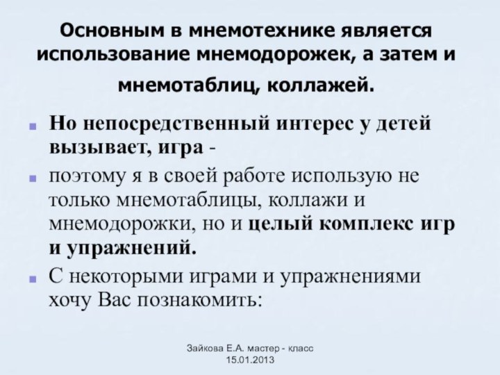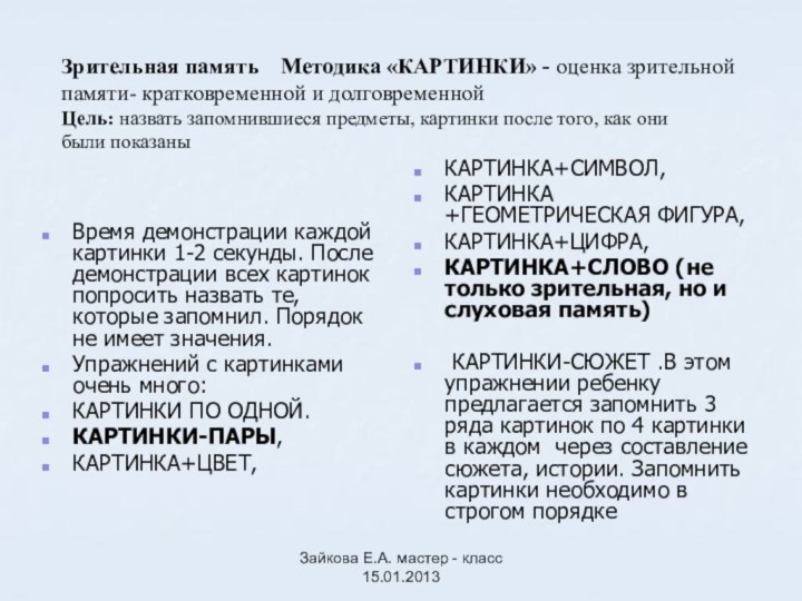 Количество правильно воспроизведенных слов говорит об объеме опосредованной памяти. Она должна быть по объему больше непосредственной памяти и в норме для детей этого возраста составляет 10-12 слов, т.е. 100%.