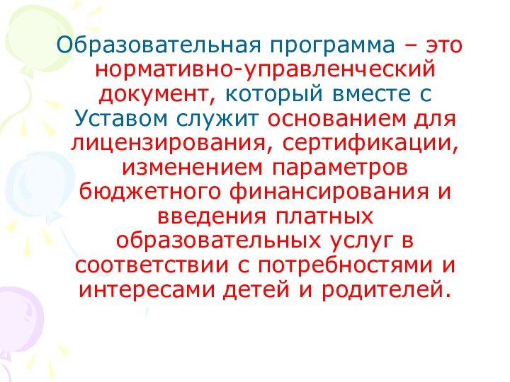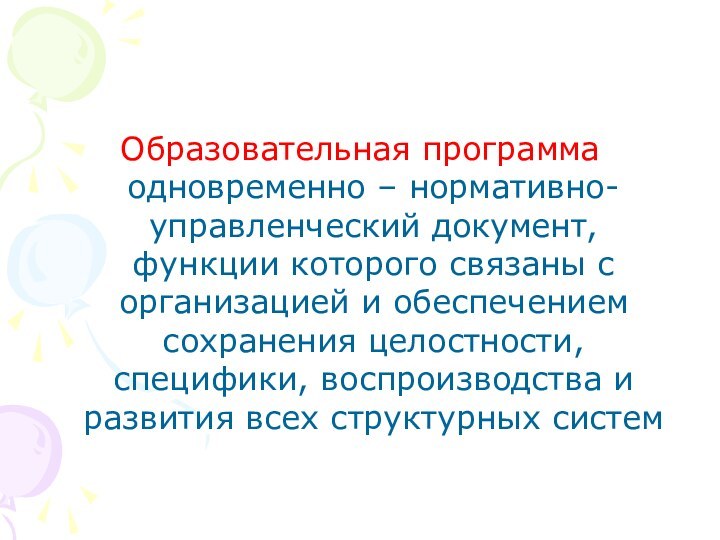 Образовательная программа одновременно – нормативно-управленческий документ, функции которого