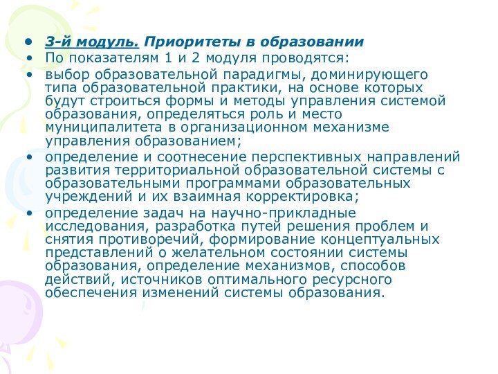 3–й модуль. Ведущие концептуальные подходы, приоритеты образования, философия образования, цели и задачи образовательной деятельности учреждения.