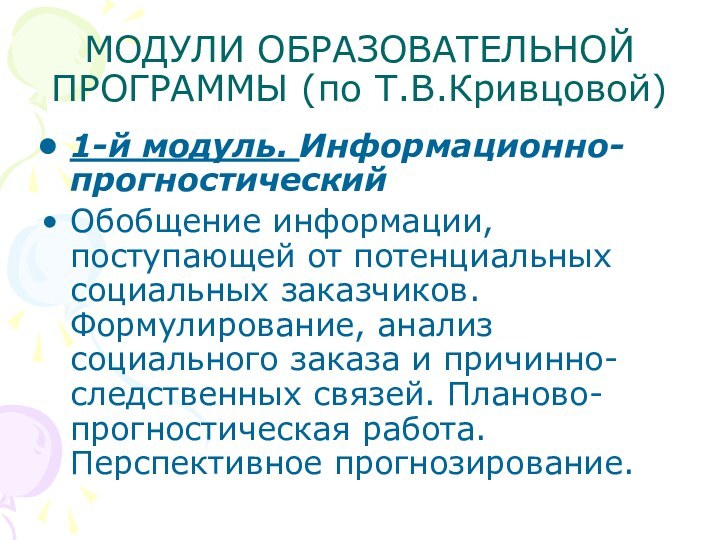 МОДУЛИ ОБРАЗОВАТЕЛЬНОЙ ПРОГРАММЫ (по Т.В.Кривцовой)