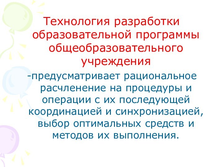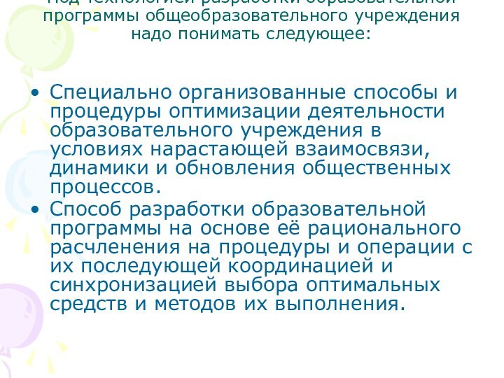 Под технологией разработки образовательной программы общеобразовательного учреждения надо