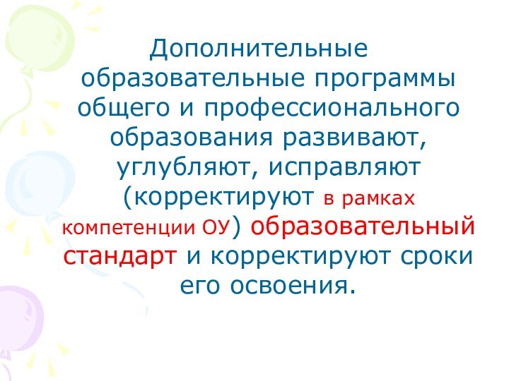 углубляют, исправляют (корректируют в рамках компетенции ОУ) образовательный стандарт
