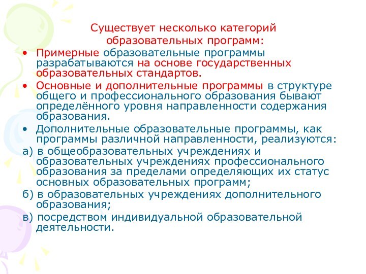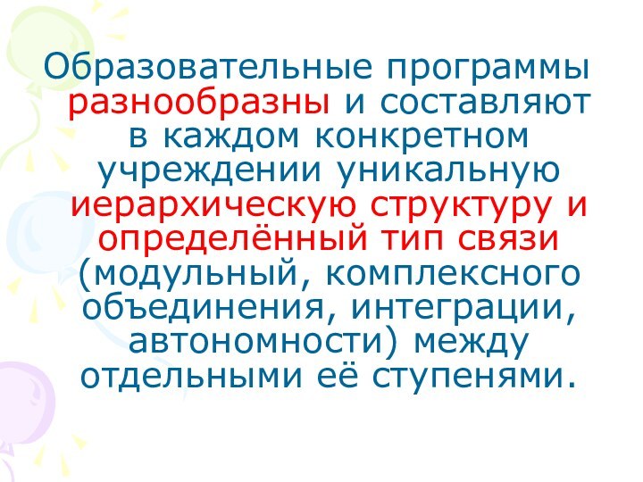 Образовательные программы разнообразны и составляют в каждом конкретном