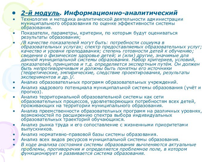 Анализ территориальной образовательной системы как сети образовательных процессов, удовлетворяющих потребностям всех детей, проживающих на территории муниципального образования.