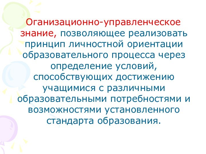 Оганизационно-управленческое знание, позволяющее реализовать принцип личностной ориентации