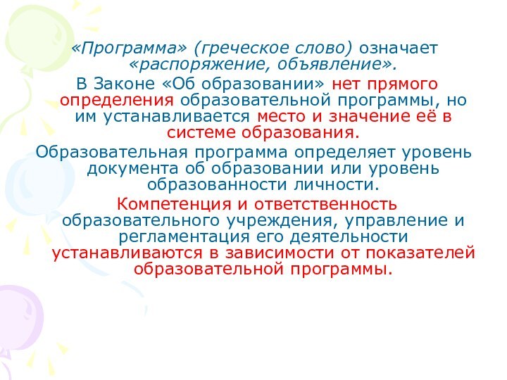 «Программа» (греческое слово) означает «распоряжение, объявление».
