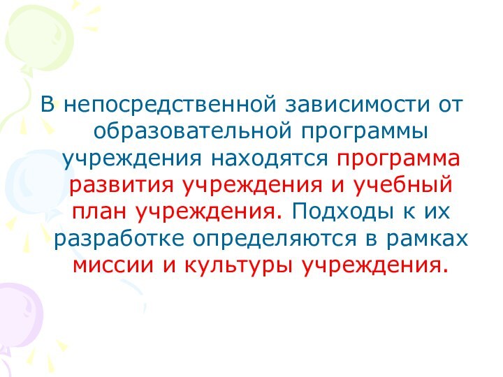 В непосредственной зависимости от образовательной программы учреждения находятся