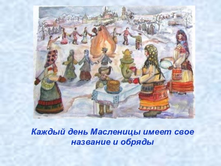 Каждый день Масленицы имеет свое название и обряды