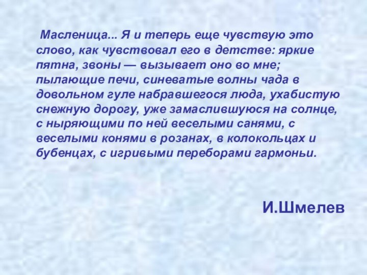 Масленица... Я и теперь еще чувствую