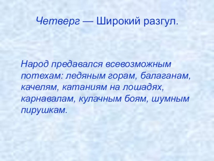 Четверг — Широкий разгул.
