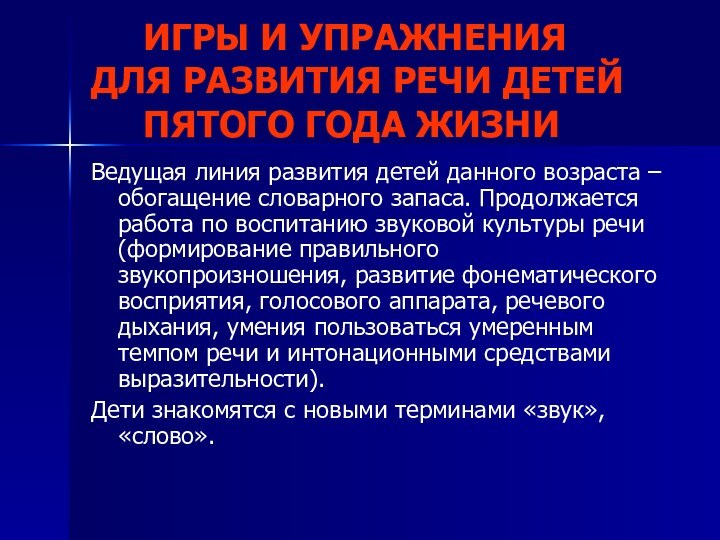 ИГРЫ И УПРАЖНЕНИЯ   ДЛЯ РАЗВИТИЯ РЕЧИ ДЕТЕЙ