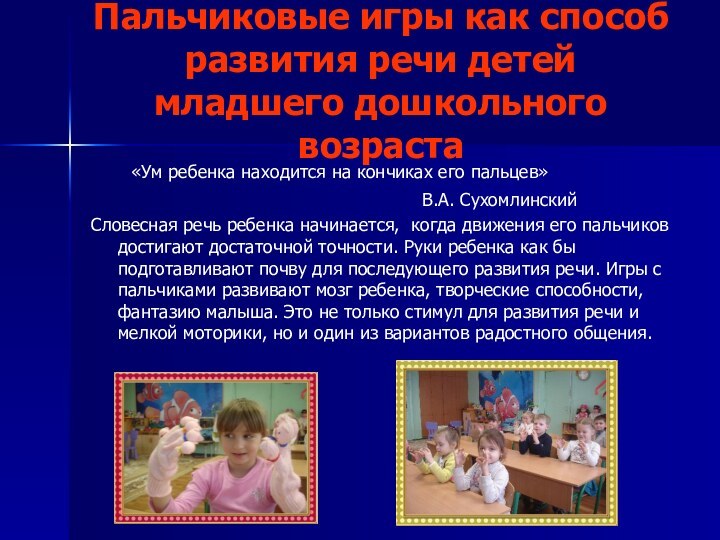 Пальчиковые игры как способ развития речи детей младшего дошкольного возраста «Ум