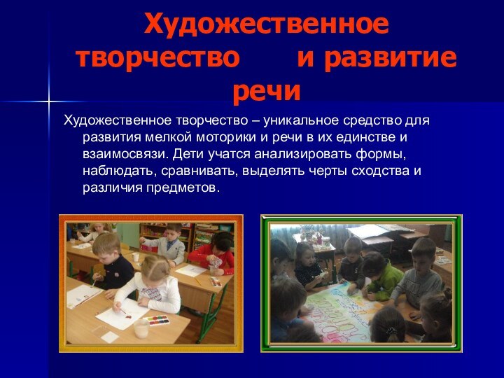 Художественное творчество  и развитие речиХудожественное творчество – уникальное средство для