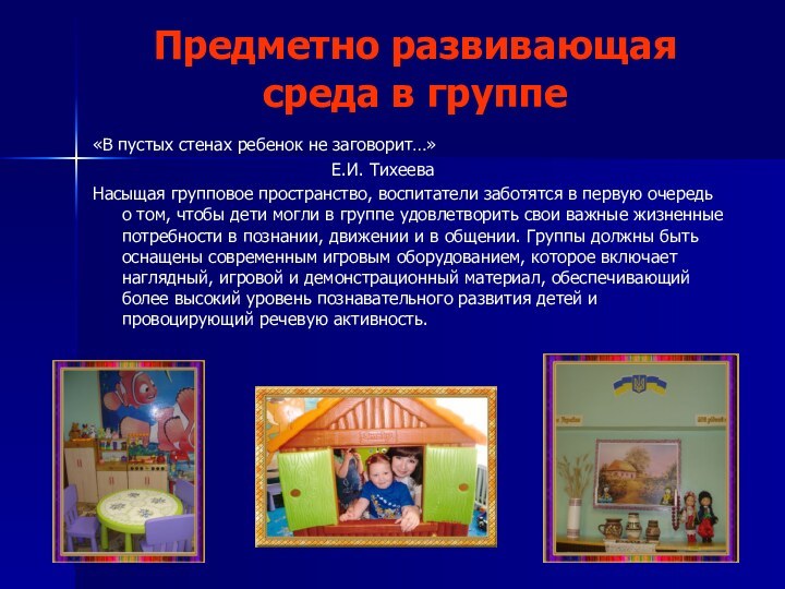 Предметно развивающая среда в группе«В пустых стенах ребенок не заговорит…»
