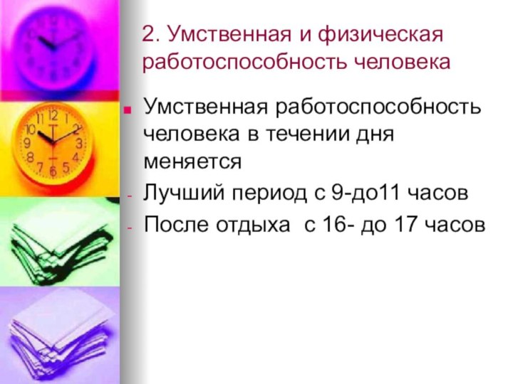 Слайд 5 2. Умственная и физическая работоспособность человека