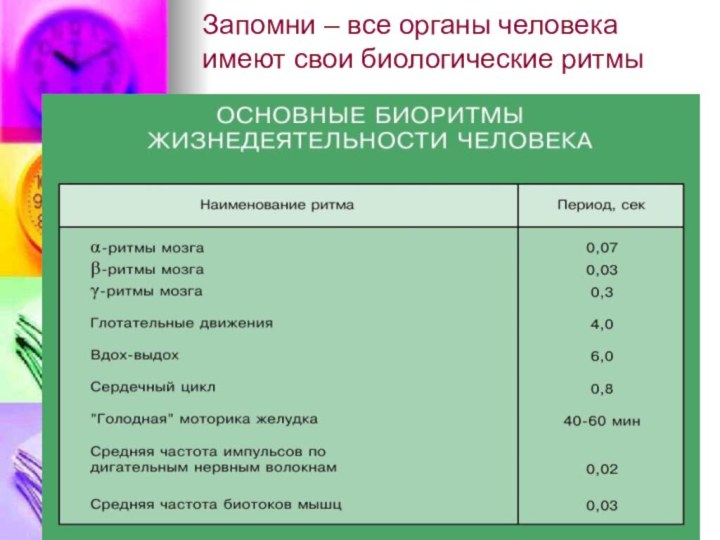 Слайд 4 Запомни – все органы человека имеют свои биологические