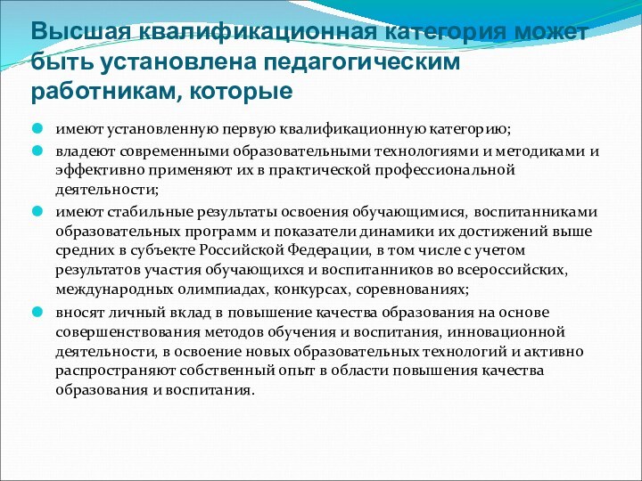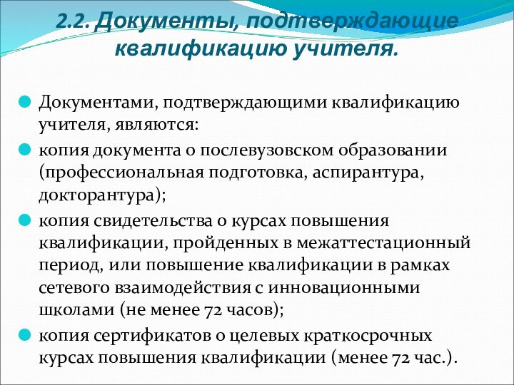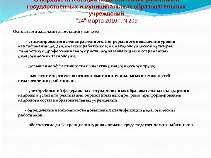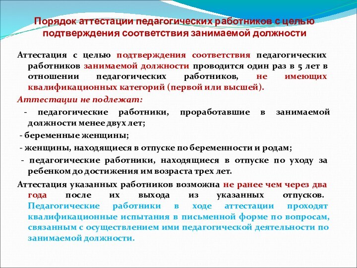 - периодическое подтверждение квалификации педагога, её соответствие задачам, стоящим