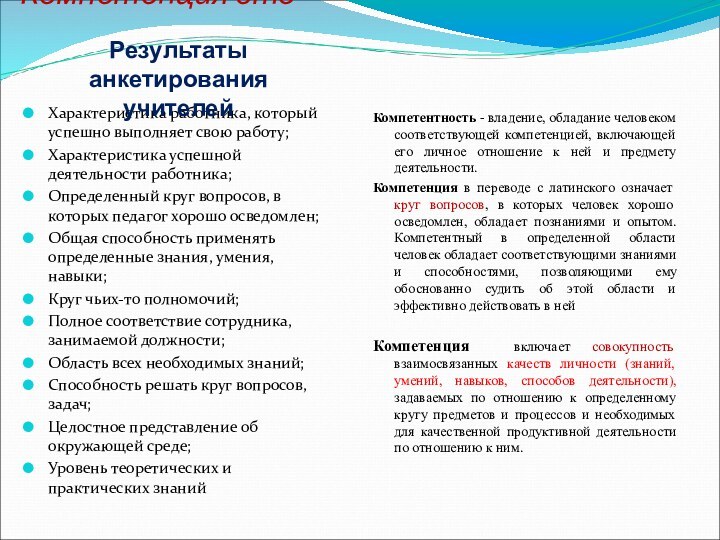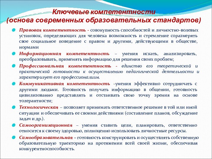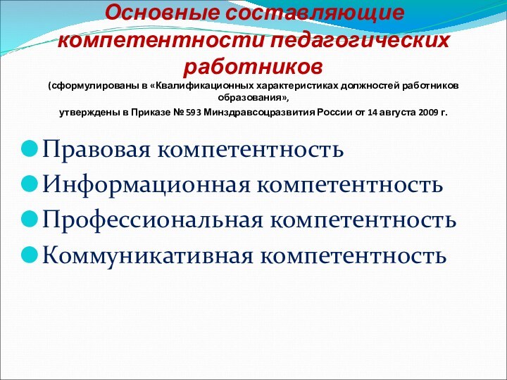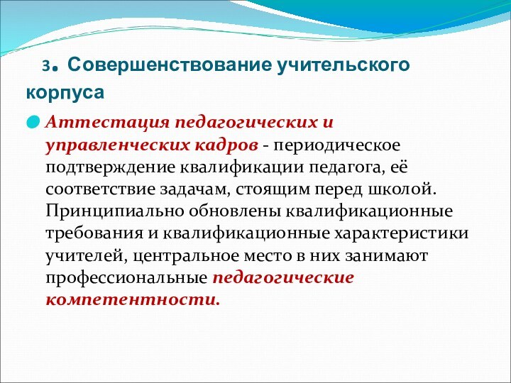 перед школой. Принципиально обновлены квалификационные требования и квалификационные характеристики учителей, центральное место в них занимают профессиональные педагогические компетентности.