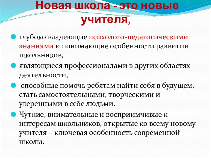 Чуткие, внимательные и восприимчивые к интересам школьников, открытые ко всему новому учителя – ключевая особенность современной школы.