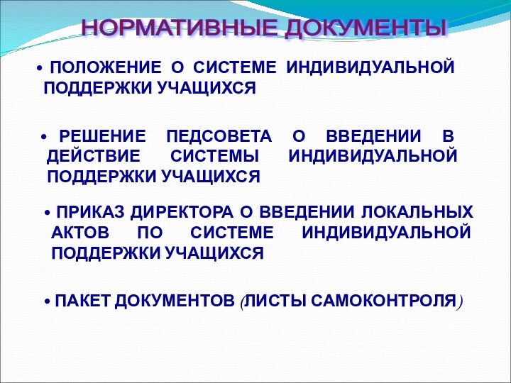 ПОЛОЖЕНИЕ О СИСТЕМЕ ИНДИВИДУАЛЬНОЙ ПОДДЕРЖКИ