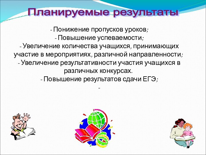 - Увеличение результативности участия учащихся в различных конкурсах.